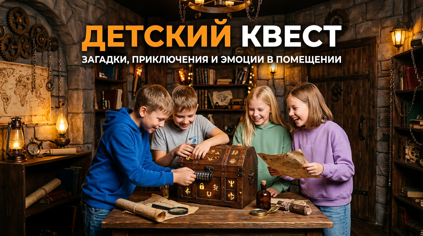 Для детей важна не сложность, а динамика и ощущение участия. Хороший детский квест не должен превращаться в «разгадывание для взрослых» — лучше, если игроки двигаются, ищут, взаимодействуют и видят результат своих действий почти сразу.